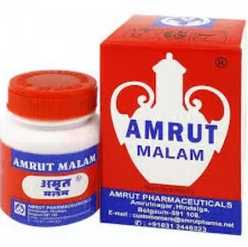Амрут Малам також використовується при сухості шкіри, мокрих або сухих шкірних захворювань, таких як порізи, рани, опіки кислоти та вогню, мікоз і т. д.